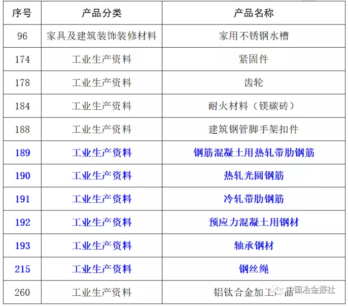 其中包括六種鋼材產品和部分鋼材相關產品(見下表)